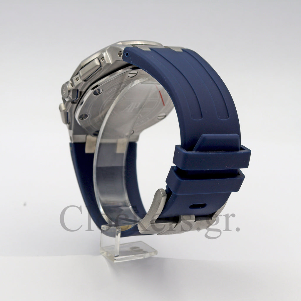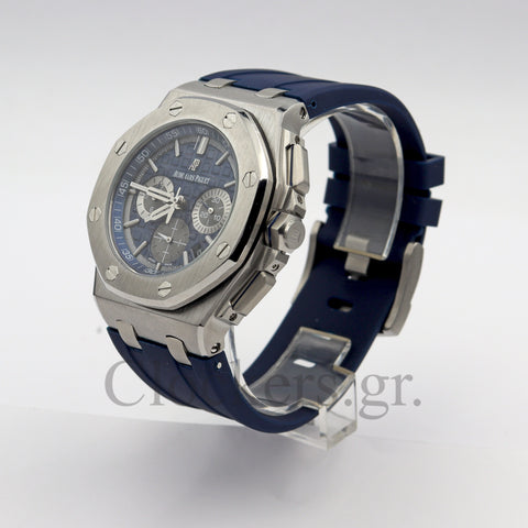 Το μοντέλο Audemars Piguet Royal Oak Offshore Chronograph Blue - BRAND NEW Watch έχει αντιγραφεί με τις τελευταίες και πιο σύγχρονες τεχνικές δημιουργίας πιστών αντιγράφων Replica AAA, έτσι ώστε ακόμη και αν ανοιχτεί από οποιοδήποτε κοσμηματοπωλείο, ο μηχανισμός (διαθέτει Perpetual Type ETA 3135) να είναι όμοιος όπως τα γνήσια Rolex. Κάθε μέρος του ρολογιού μέσα και έξω έχει αναπαραχθεί με τα ακριβή γραμμάρια που έχουν μεμονομένα και συνολικά τα εξαρτήματα του γνήσιου Audemars Piguet .