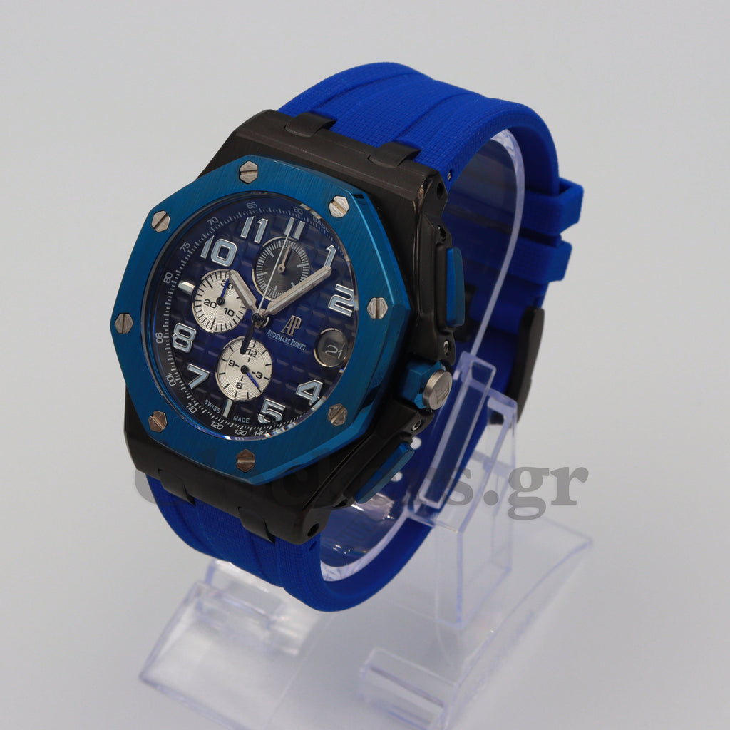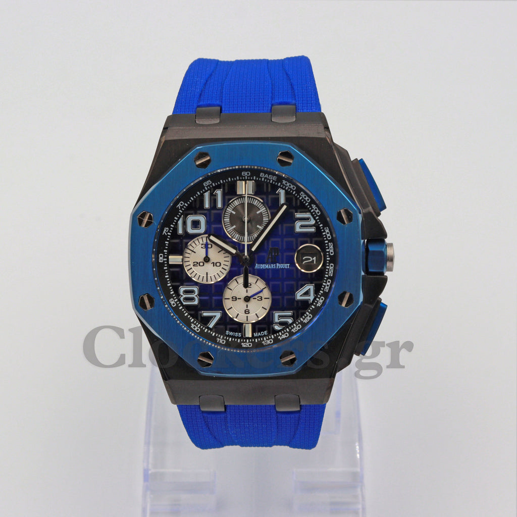 Το μοντέλο Audemars Piguet Royal Oak Offshore Selfwinding Chronograph Black Ceramic 44mm Blue Dial Blue Ceramic Bezel 26405CE.OO.A030CA.01 - BRAND NEW Watch έχει αντιγραφεί με τις τελευταίες και πιο σύγχρονες τεχνικές δημιουργίας πιστών αντιγράφων Replica AAA, έτσι ώστε ακόμη και αν ανοιχτεί από οποιοδήποτε κοσμηματοπωλείο, ο μηχανισμός (διαθέτει Perpetual Type ETA 3135) να είναι όμοιος όπως τα γνήσια Rolex. Κάθε μέρος του ρολογιού μέσα και έξω έχει αναπαραχθεί με τα ακριβή γραμμάρια που έχουν μεμονομένα και συνολικά τα εξαρτήματα του γνήσιου Audemars Piguet .