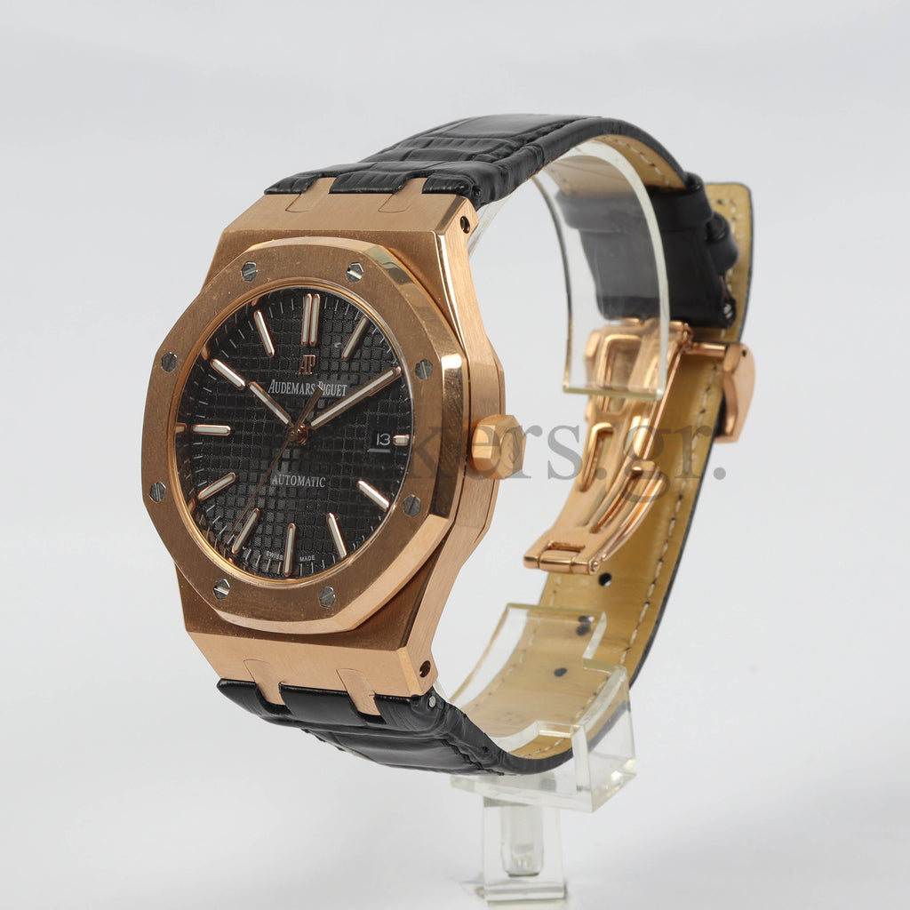 Το μοντέλο Audemars Piguet Royal Oak Rose Gold Black Leather Watch - 41mm έχει αντιγραφεί με τις τελευταίες και πιο σύγχρονες τεχνικές δημιουργίας πιστών αντιγράφων Replica AAA, έτσι ώστε ακόμη και αν ανοιχτεί από οποιοδήποτε κοσμηματοπωλείο, ο μηχανισμός (διαθέτει Perpetual Type ETA 3135) να είναι όμοιος όπως τα γνήσια Rolex. Κάθε μέρος του ρολογιού μέσα και έξω έχει αναπαραχθεί με τα ακριβή γραμμάρια που έχουν μεμονομένα και συνολικά τα εξαρτήματα του γνήσιου Audemars Piguet .
