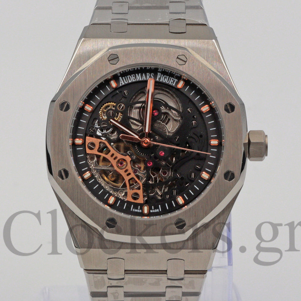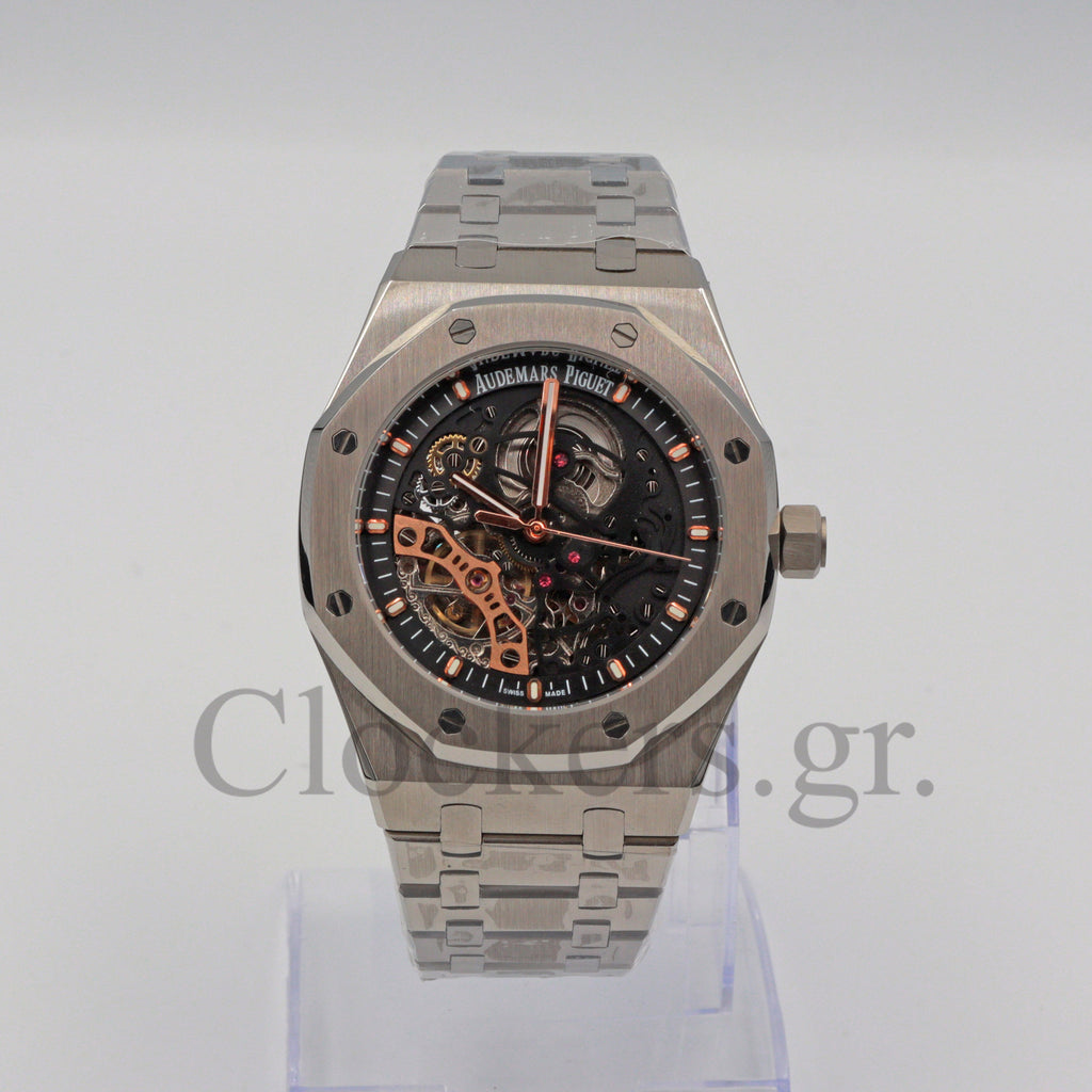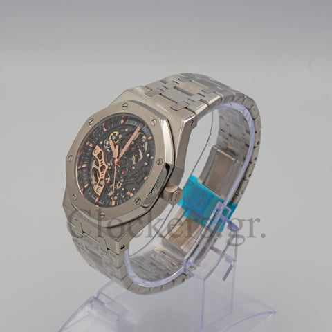 Το μοντέλο Audemars Piguet Royal Oak Silver 41mm Turbilion Watch έχει αντιγραφεί με τις τελευταίες και πιο σύγχρονες τεχνικές δημιουργίας πιστών αντιγράφων Replica AAA, έτσι ώστε ακόμη και αν ανοιχτεί από οποιοδήποτε κοσμηματοπωλείο, ο μηχανισμός (διαθέτει Perpetual Type ETA 3135) να είναι όμοιος όπως τα γνήσια Rolex. Κάθε μέρος του ρολογιού μέσα και έξω έχει αναπαραχθεί με τα ακριβή γραμμάρια που έχουν μεμονομένα και συνολικά τα εξαρτήματα του γνήσιου Audemars Piguet .