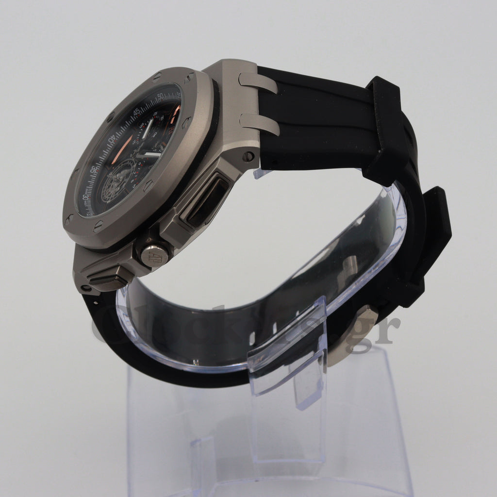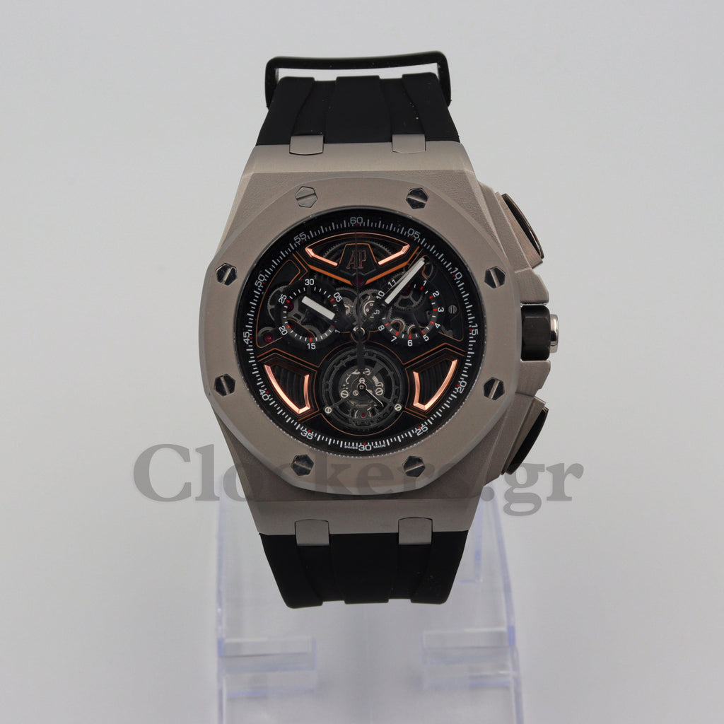 Το μοντέλο Audemars Piguet Unveils Limited-Edition Royal Oak Offshore Selfwinding Flying Tourbillon Chronograph Watch In New 44mm Case έχει αντιγραφεί με τις τελευταίες και πιο σύγχρονες τεχνικές δημιουργίας πιστών αντιγράφων Replica AAA, έτσι ώστε ακόμη και αν ανοιχτεί από οποιοδήποτε κοσμηματοπωλείο, ο μηχανισμός (διαθέτει Top Quality Japanese “MIYOTA” Movement with Fucntional Stopwatch Feature like the Authentic) να είναι όμοιος όπως τα γνήσια Rolex. Κάθε μέρος του ρολογιού μέσα και έξω έχει αναπαραχθεί με τα ακριβή γραμμάρια που έχουν μεμονωμένα και συνολικά τα εξαρτήματα του γνήσιου Audemars Piguet .