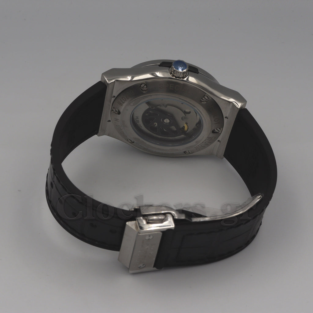 Είναι αδιάβροχο, στεγανοποιημένο έως 1 bar και έχει ρυθμιστική βίδα με ανάγλυφη κορόνα. Ο ζαφειρένιος κρυστάλλος είναι αρκετά ανθεκτικός σε γρατσουνιές