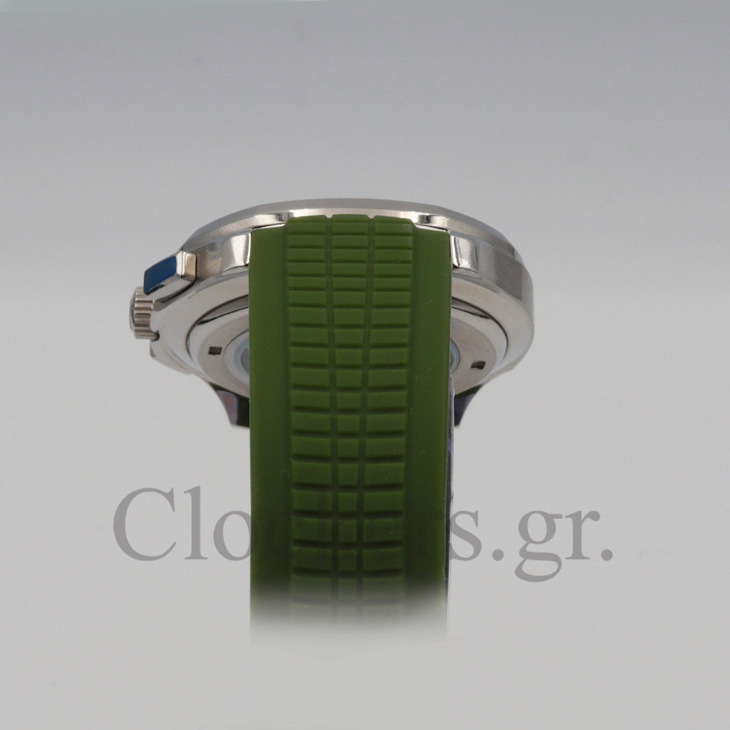 αδιάβροχο, στεγανοποιημένο έως 10 bar και έχει ρυθμιστική βίδα με ανάγλυφη κορόνα. Ο ζαφειρένιος κρυστάλλος είναι αρκετά ανθεκτικός σε γρατσουνιές