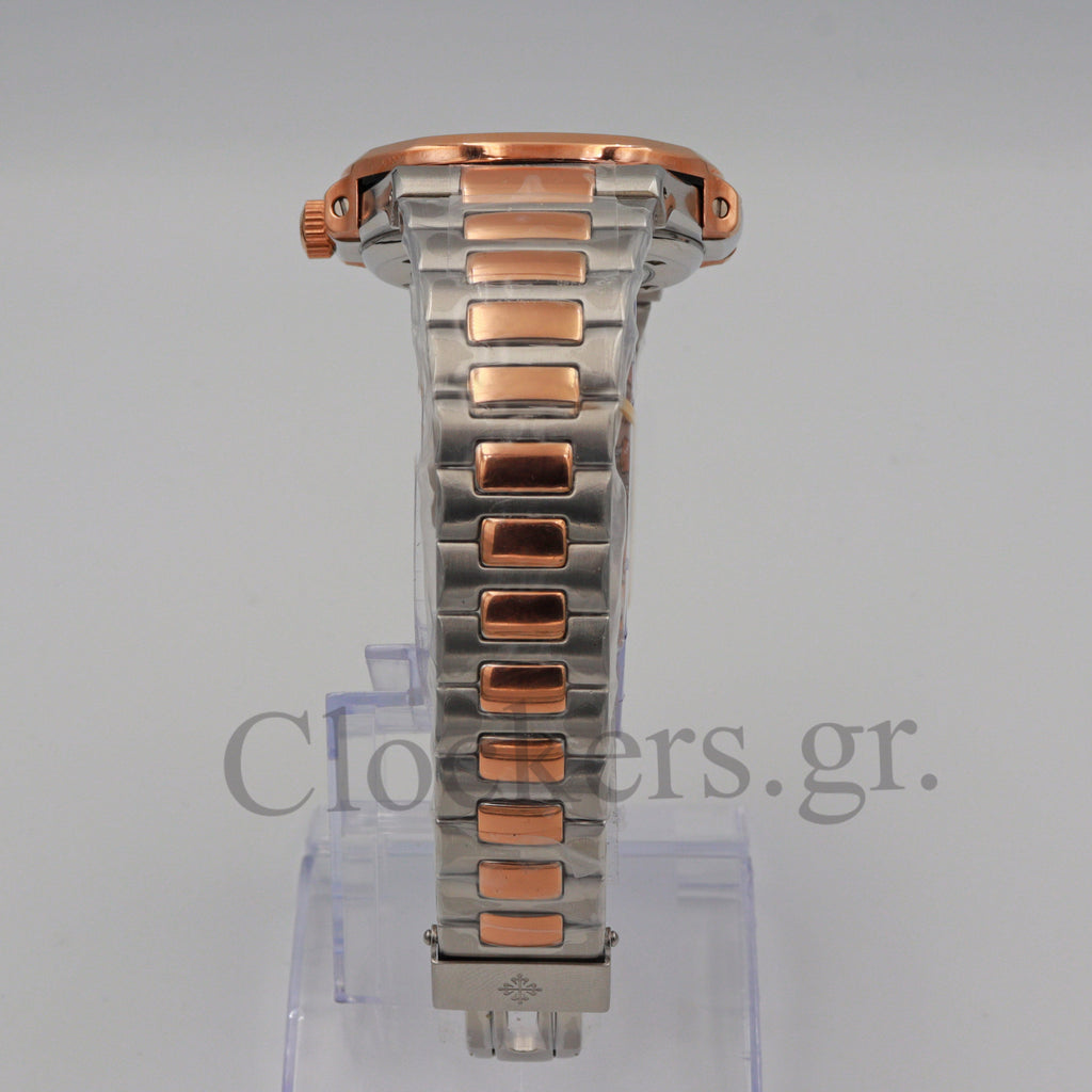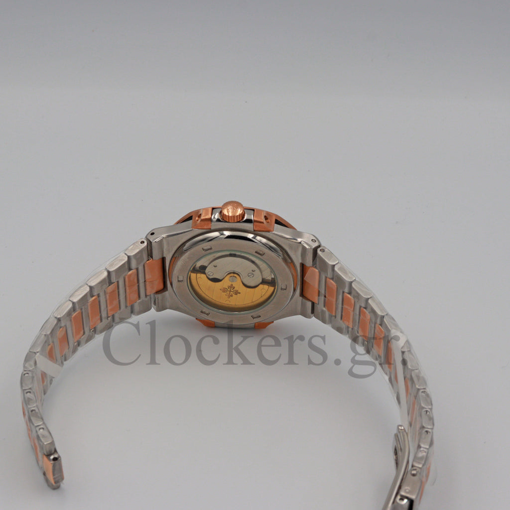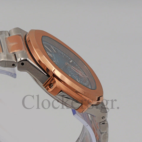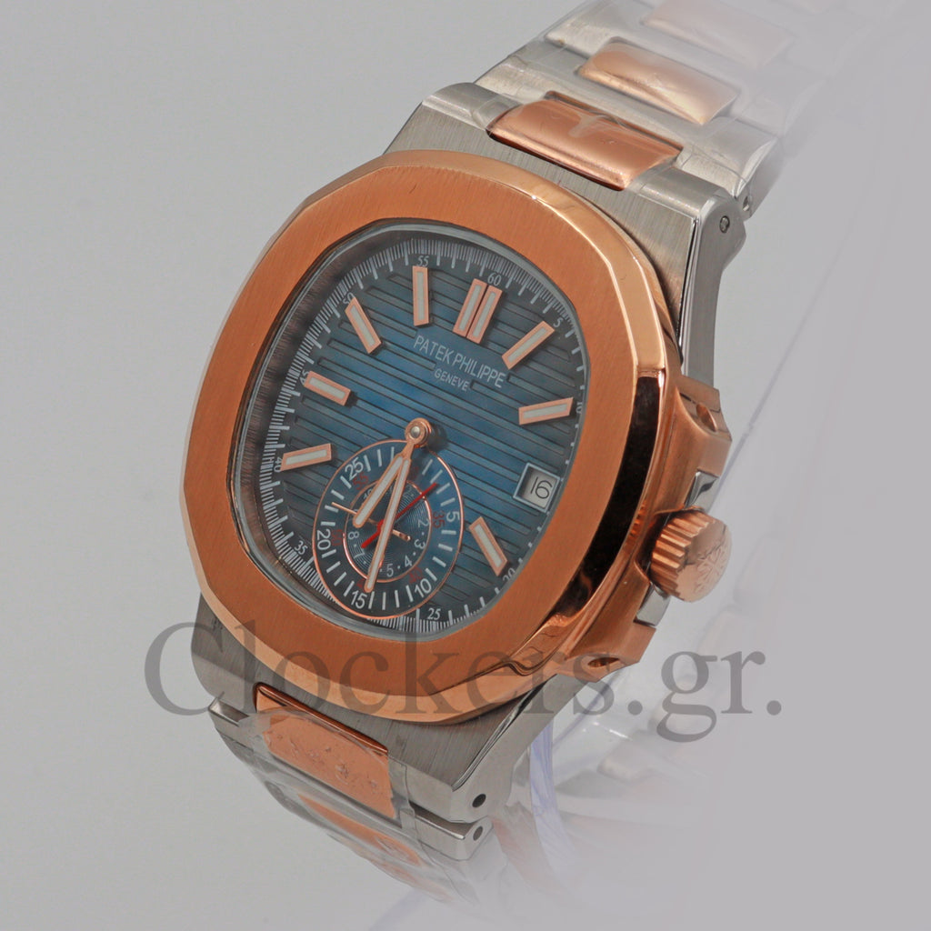 Το διαχρονικό μοντέλο Patek Philippe Nautilus 2-Tone Blue Dial Bracelet έχει αντιγραφεί με τις τελευταίες και πιο σύγχρονες τεχνικές δημιουργίας πιστών αντιγράφων  Replica AAA , έτσι ώστε ακόμη και αν ανοιχτεί από οποιοδήποτε κοσμηματοπωλείο, ο μηχανισμός ( διαθέτει Perpetual Type ETA 3135 ) να είναι ομοιογενές όπως τα γνήσια Patek Philippe . Κάθε μέρος του ρολογιού μέσα και έξω έχει αναπαραχθεί με τα ακριβή γραμμάρια που έχουν μεμονωμένα και συνολικά τα εξαρτήματα  του γνήσιου Patek Philippe . Έχει λειτουργία σε ώρα , λεπτό και δευτερόλεπτο και  φέρει ένδειξη ημερομηνίας. Το σώμα είναι κατασκευασμένο από